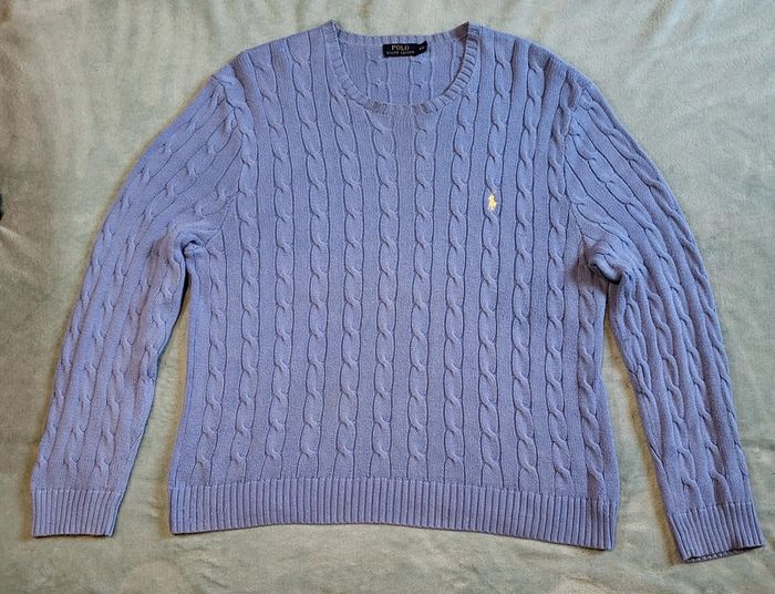 Pull Torsadé Lilas - Logo Brodé Crème 🐎 Ralph Lauren  - Taille XXL - photo numéro 1
