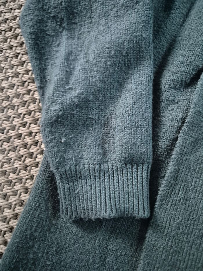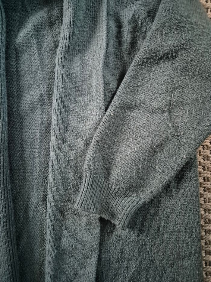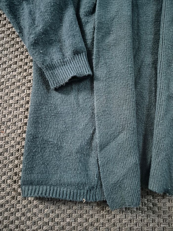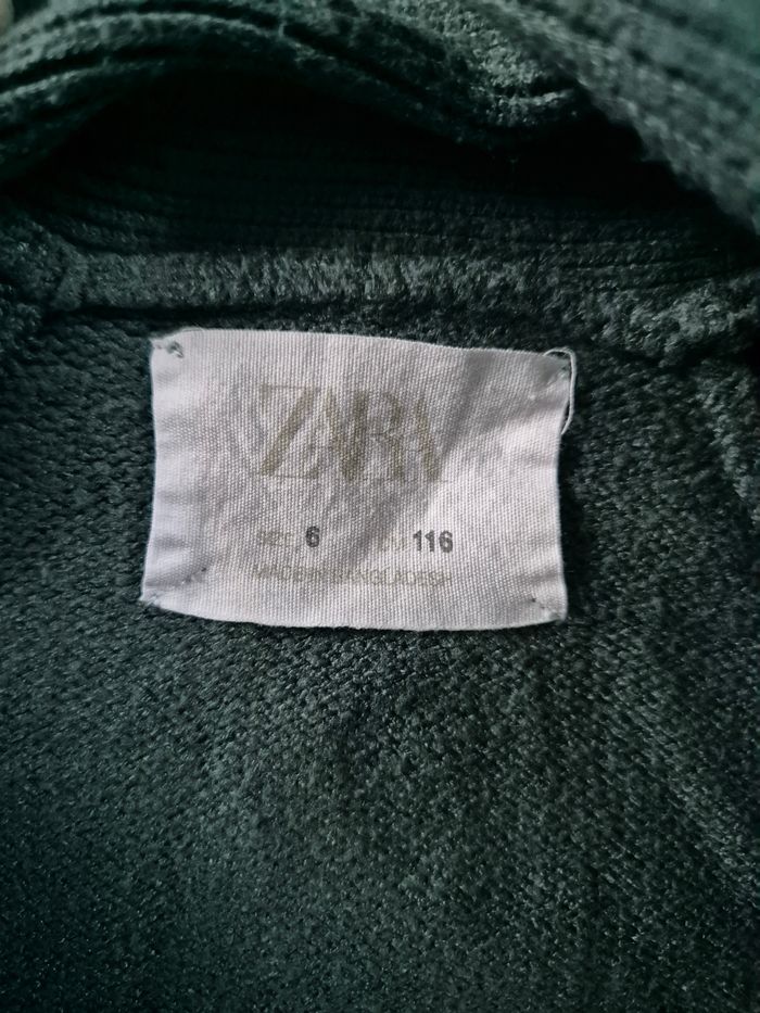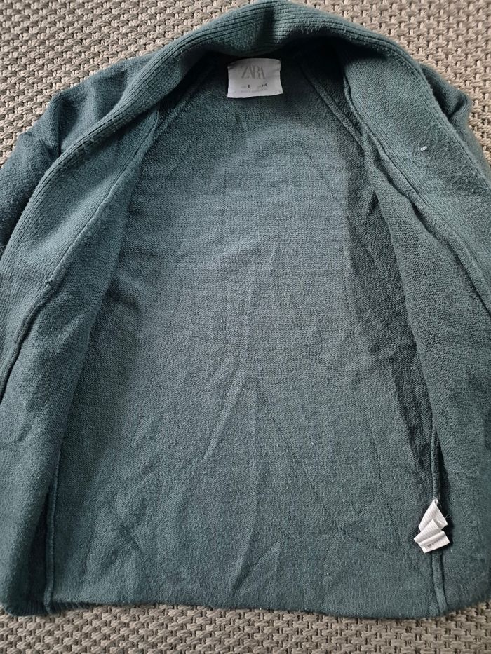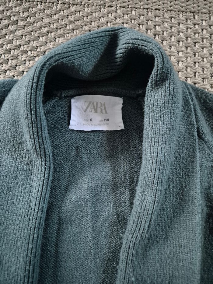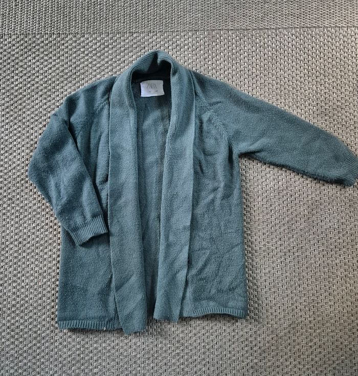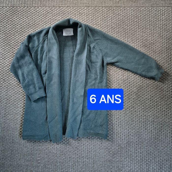 Gilet vert long. En bon état. Quelques bouloches. Bel effet porté. Taille plutôt grand. Taille 6 ans - marque zara