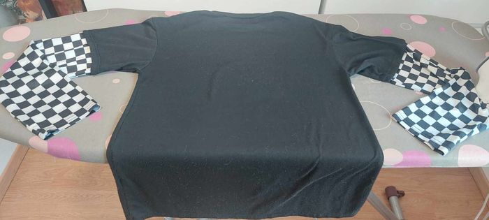 Joli sweat léger mixte noir XS manches damiers noirs/blancs en bon état - photo numéro 4