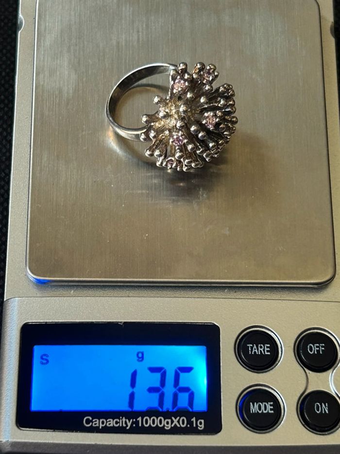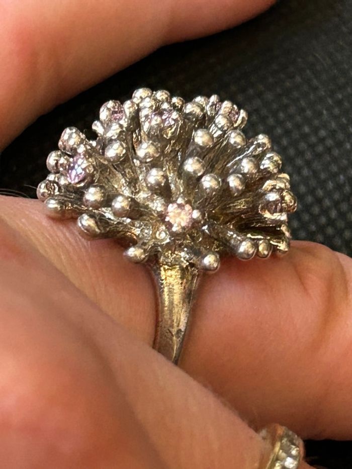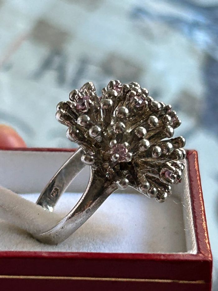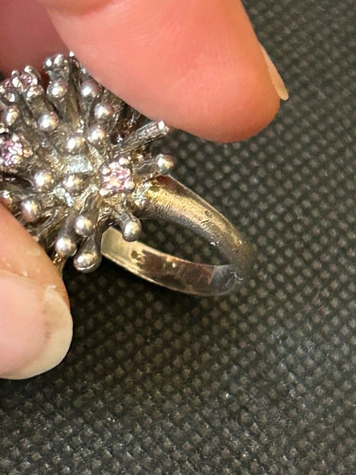 Jolie bague en argent massif avec petites pierres roses T. 56 femme TBE - photo numéro 1