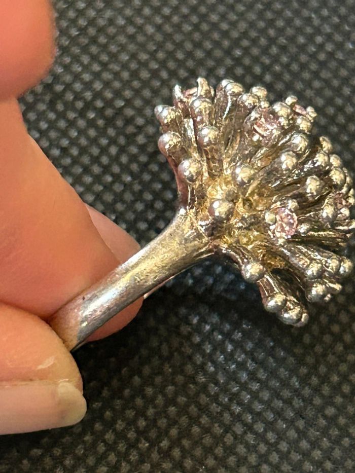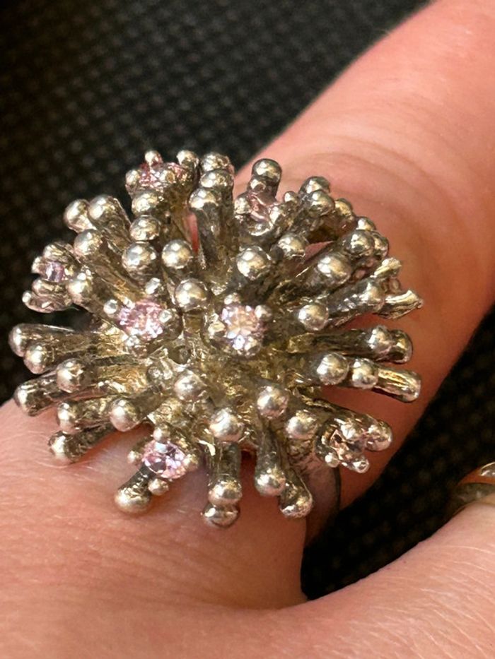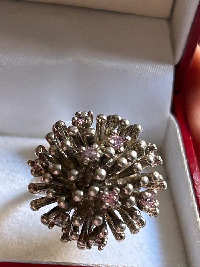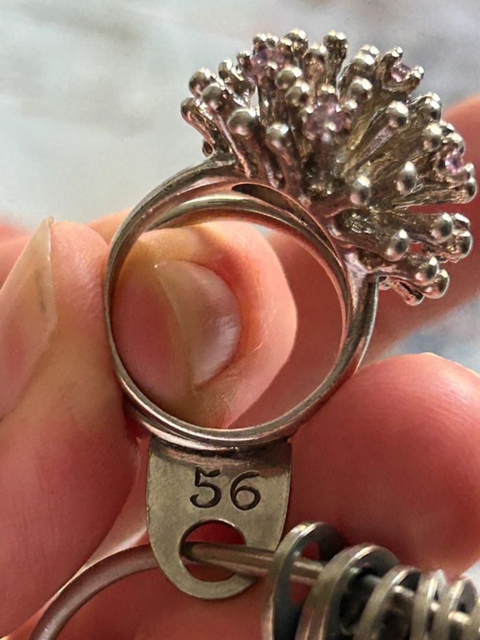 Jolie bague en argent massif 925/1000 avec des petites pierres roses pour femme T. 56, en très bon état. Poids: 13,6 grammes. #merine103 #merine103bijoux