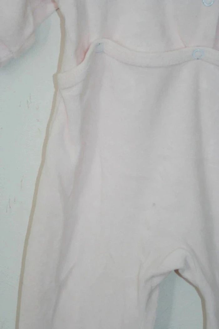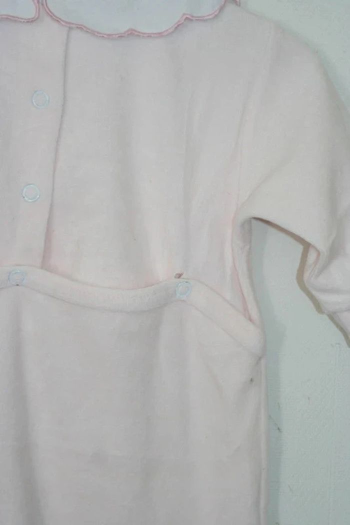 Pyjama rose clair avec col, l'Enfant Do, taille 6 mois, une pression fragilisée à l'arrière + 1 petit point noir (cf photos), 80% coton/20% polyester, 120g
