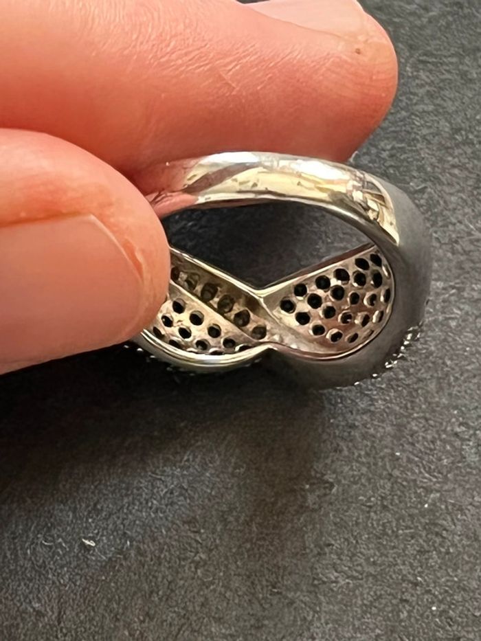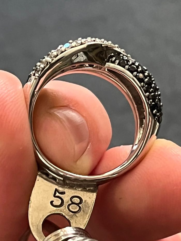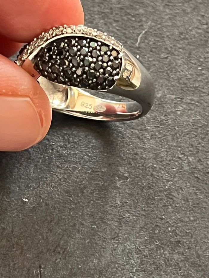 Belle bague en argent massif avec pierres blanches et noires T. 58 femme TBE - photo numéro 7