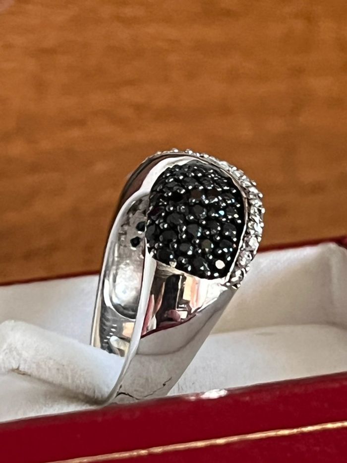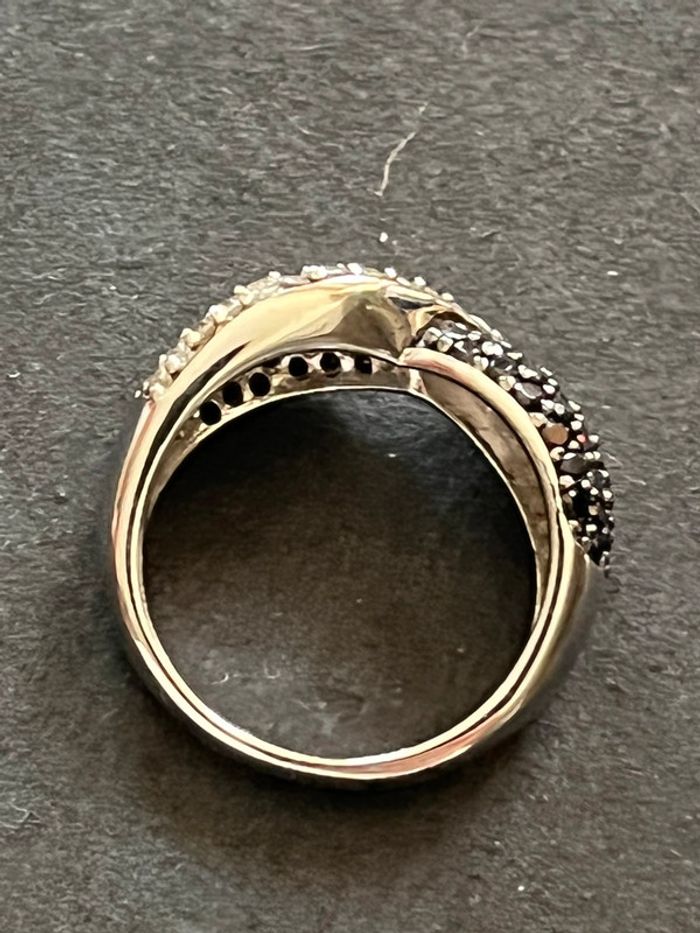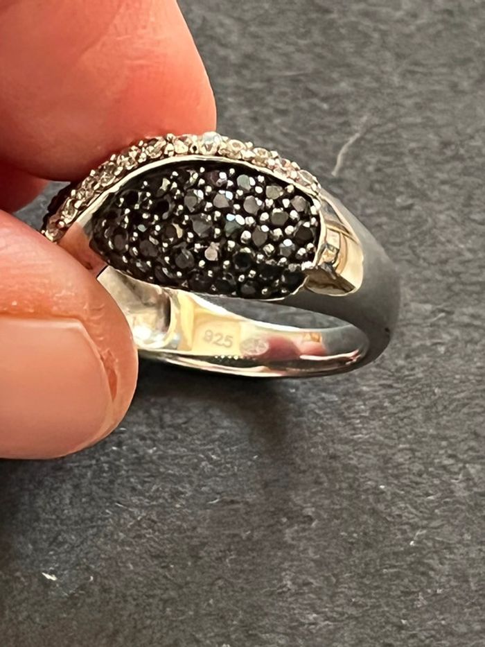 Belle bague en argent massif avec pierres blanches et noires T. 58 femme TBE - photo numéro 2