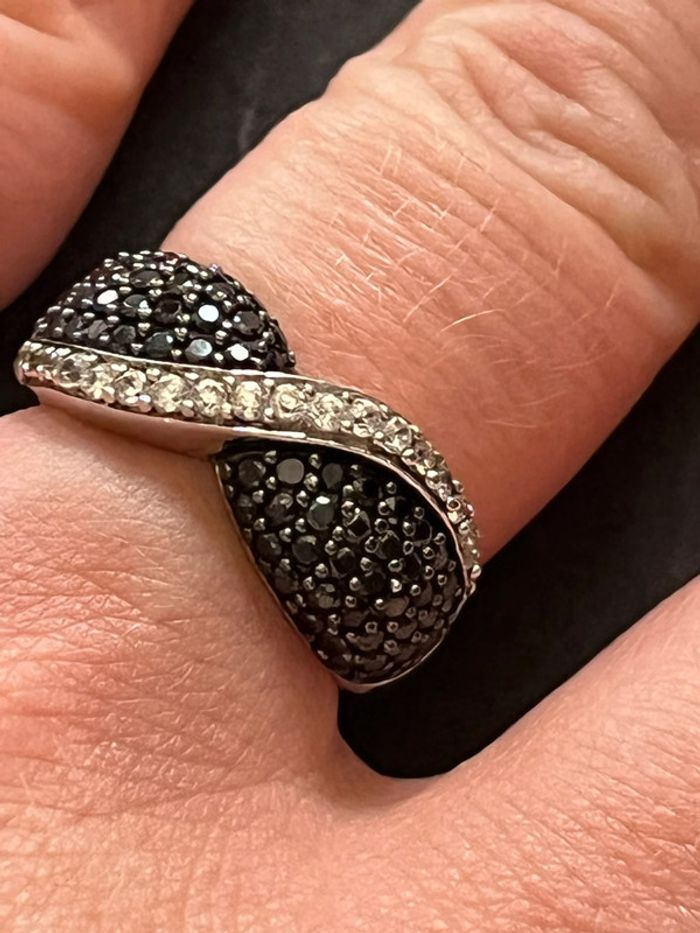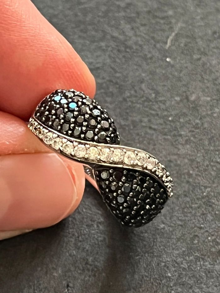 Belle bague en argent massif avec pierres blanches et noires T. 58 femme TBE - photo numéro 3
