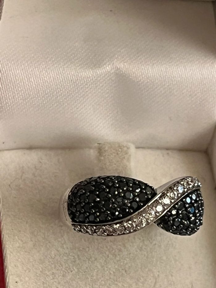 Belle bague en argent massif avec pierres blanches et noires T. 58 femme TBE - photo numéro 1