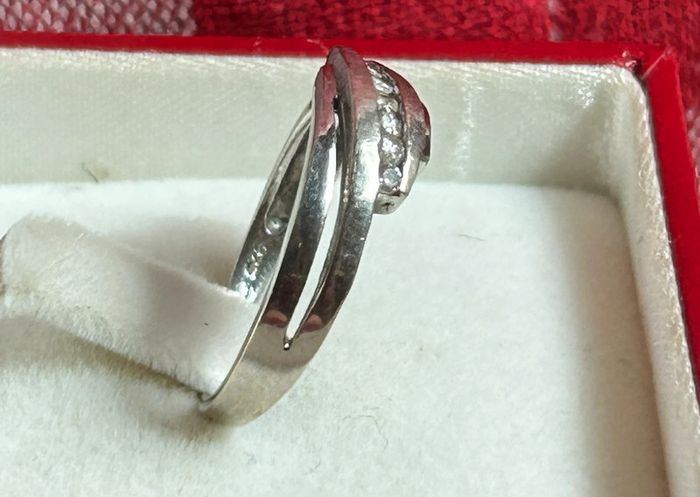Jolie bague en argent massif avec brillants T. 53 femme TBE - photo numéro 4