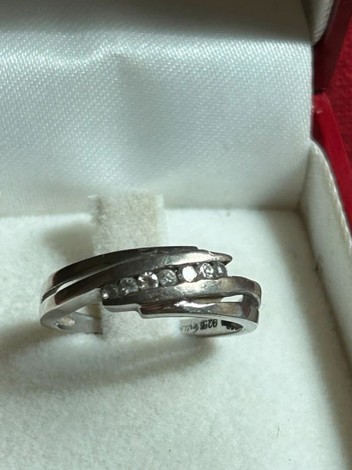 Jolie bague en argent massif avec brillants T. 53 femme TBE - photo numéro 1
