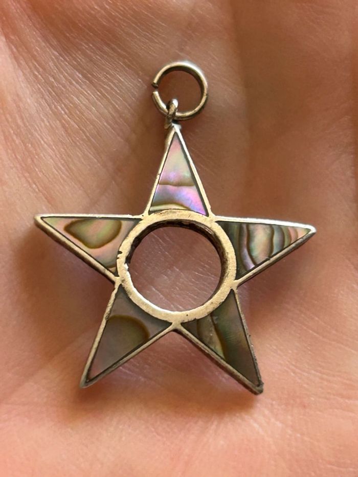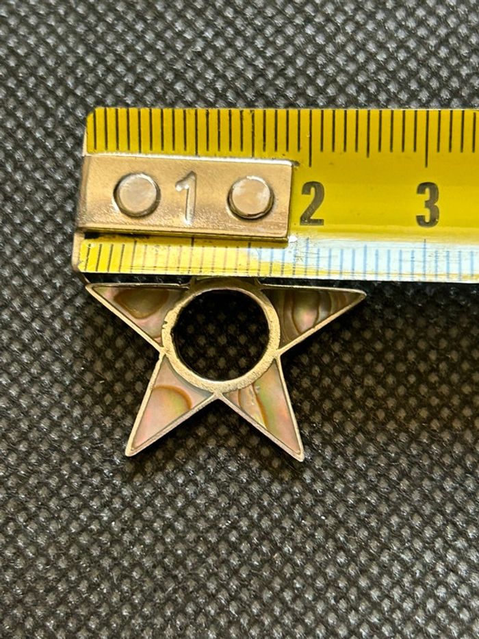 Joli pendentif en forme d’étoile en argent massif incrusté de nacre, pour femme, en très bon état. Largeur: 2,5 cm environ, poids: 1,7 grammes. #merine103 #merine103bijoux