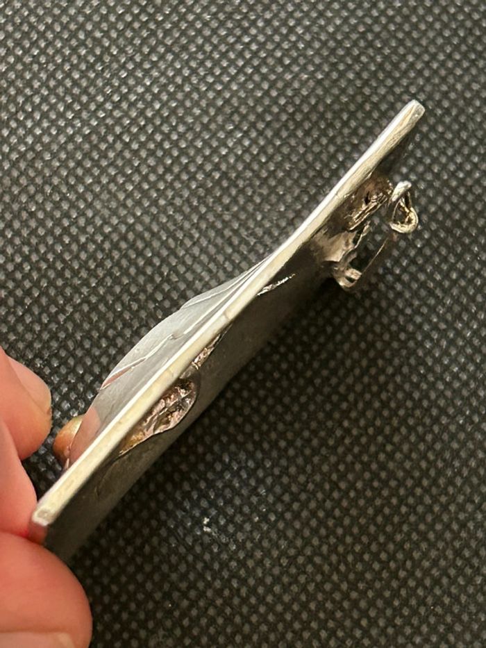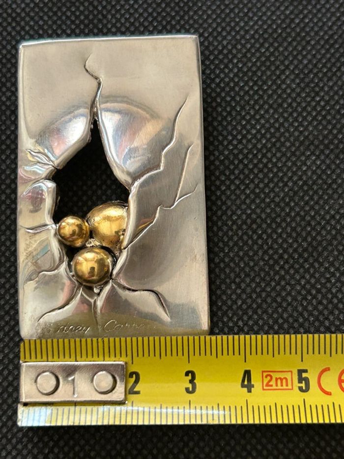 Belle broche rectangulaire an plaqué argent et plaqué or, signée Sidney Carron, en très bon état. Dimensions: 6 cm x 3,5 cm environ, poids: 32,8 grammes. Prix de vente en boutique: 75 euros. #merine103 #merine103bijou