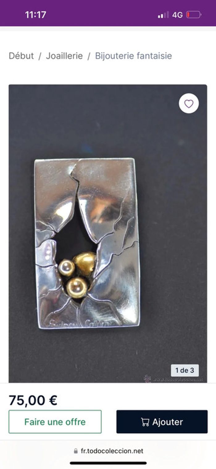 Belle broche en plaqué argent Sidney Carron TBE - photo numéro 7