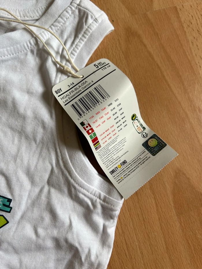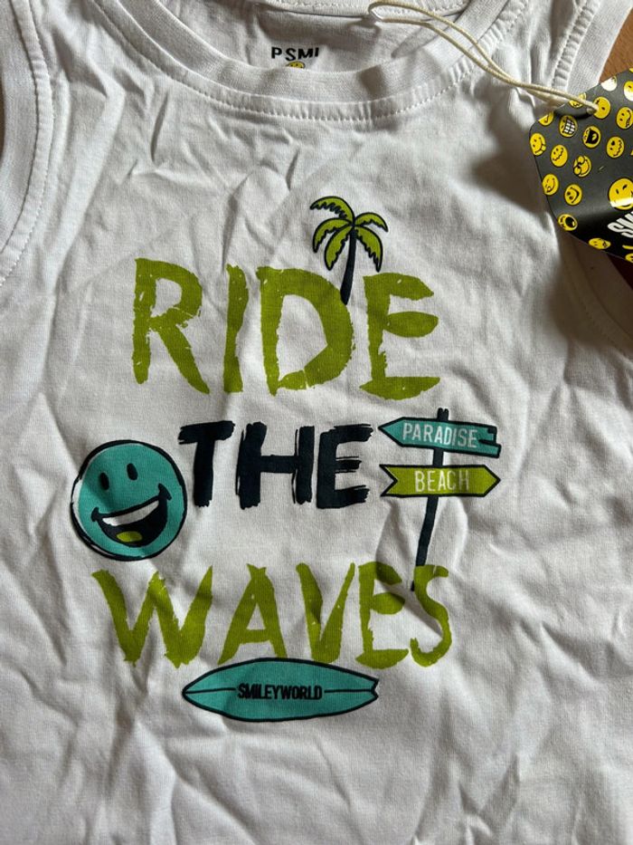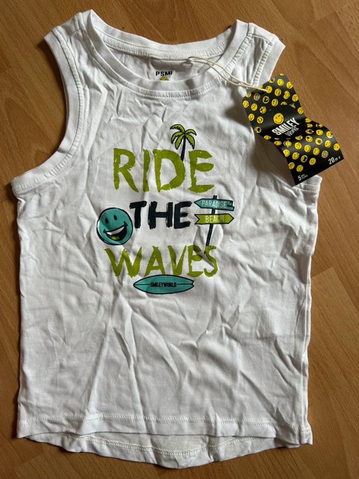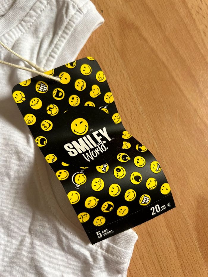 Beau débardeur blanc Smiley pour garçon ou fille T. 5 ans/110 cm, en coton, neuf avec étiquette. Prix étiquette: 20,99 euros. #merine103 #merine103vetementenfant #merine103vetementgarcon #merine103vetementgarcon5ans #merine103vetementfille #merine103vetementfille5ans