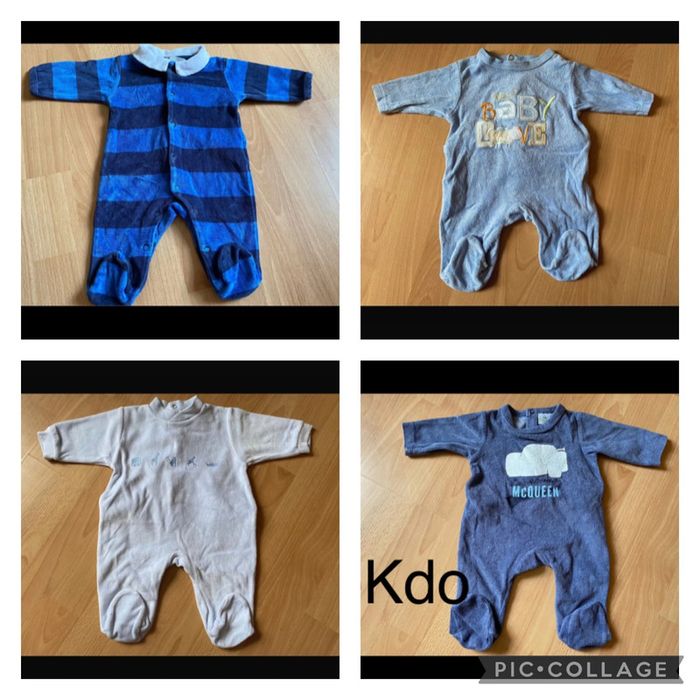 Gros lot de pyjamas/grenouillères hiver en velours T. 1 mois/54 cm garçon TBE - photo numéro 1