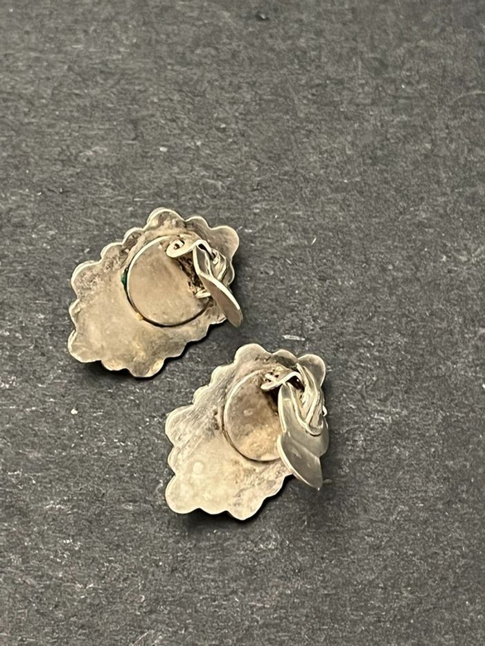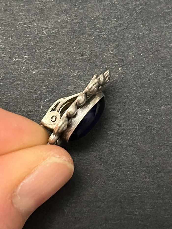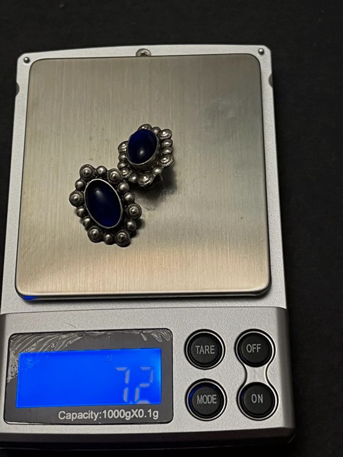 Jolie paire de boucles d’oreilles en argent massif avec pierre bleue femme TBE - photo numéro 8
