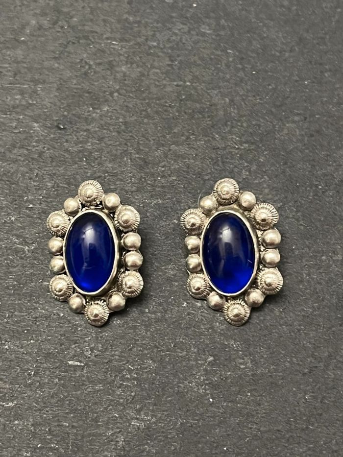 Jolie paire de boucles d’oreilles en argent massif avec pierre bleue femme TBE - photo numéro 5