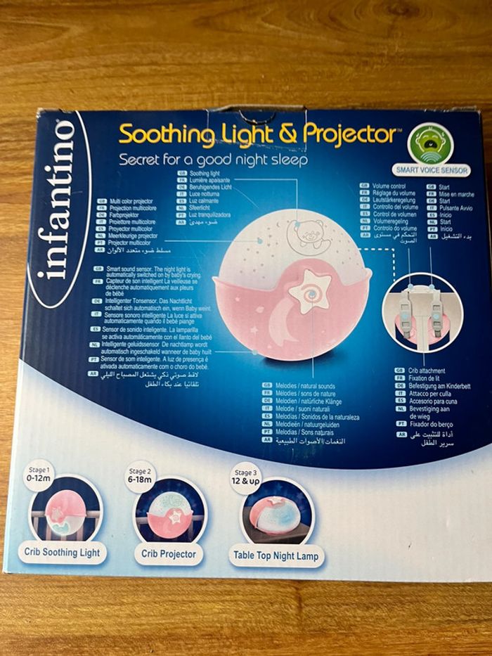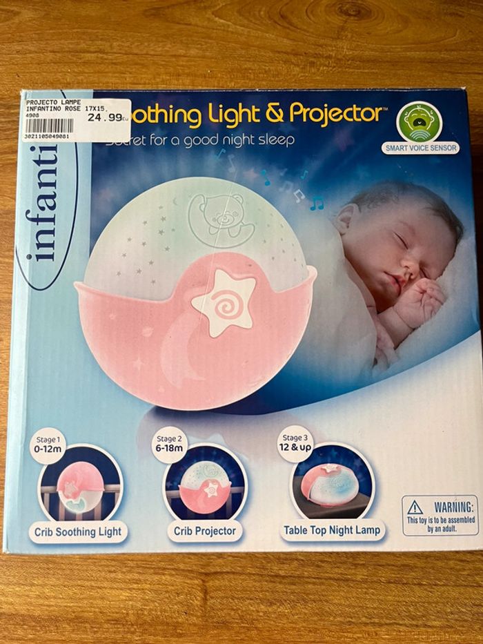 Jolie veilleuse rose et ronde, pour bébé de marque INFANTINO, en très bon état, vendue dans son emballage d’origine, piles non fournies. Elle s’allume avec différents modèles de couleurs et différentes musiques et sons, le volume est réglable sur 2 intensités. Prix neuf: 24,99 euros. #merine103 #merine103bebe #merine103puericulture #infantino