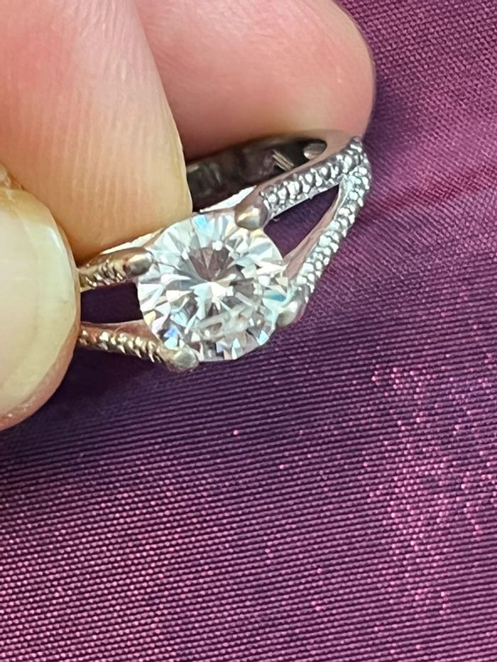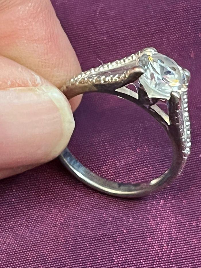 Jolie bague en métal argenté avec pierre blanche T. 52 femme TBE - photo numéro 9