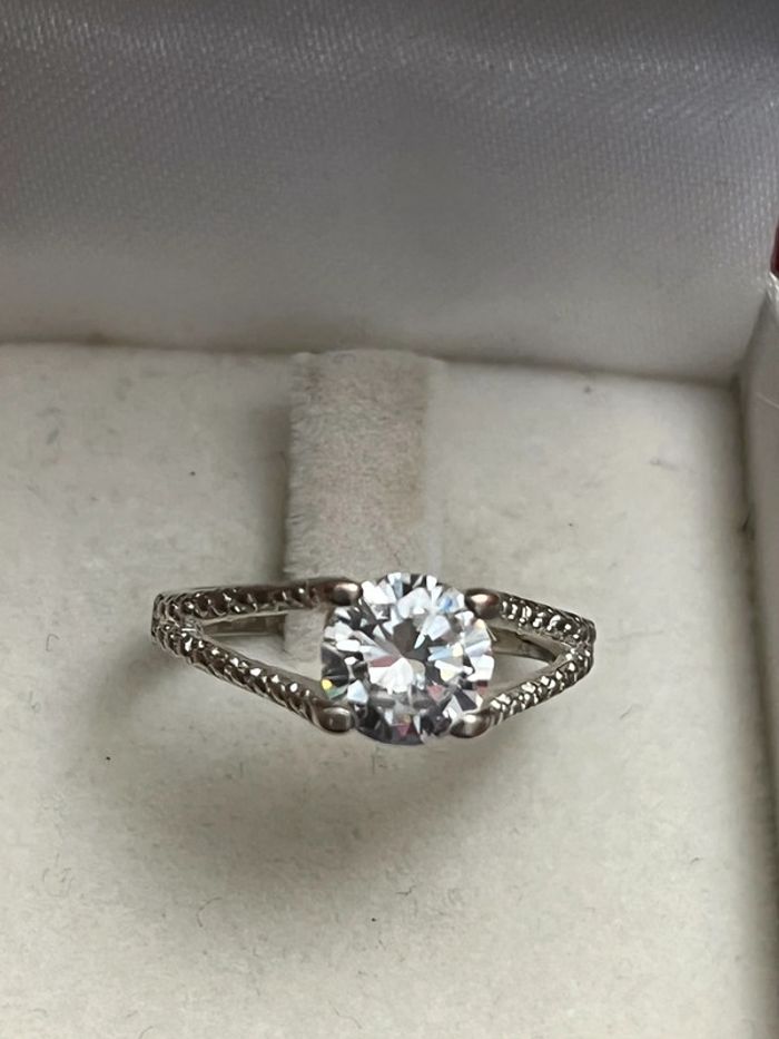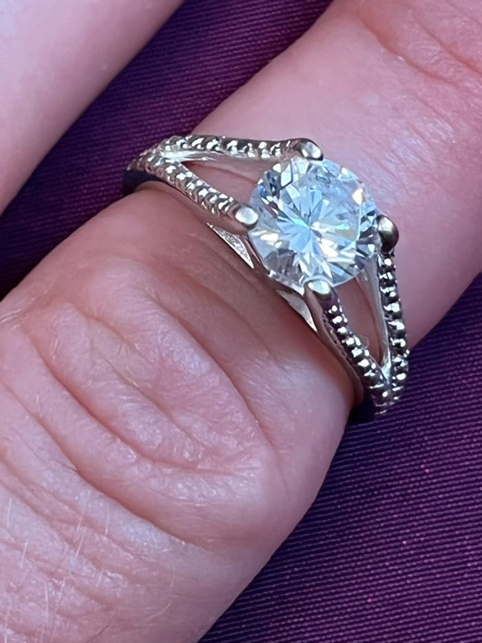 Jolie bague en métal argenté avec pierre blanche T. 52 femme TBE - photo numéro 1