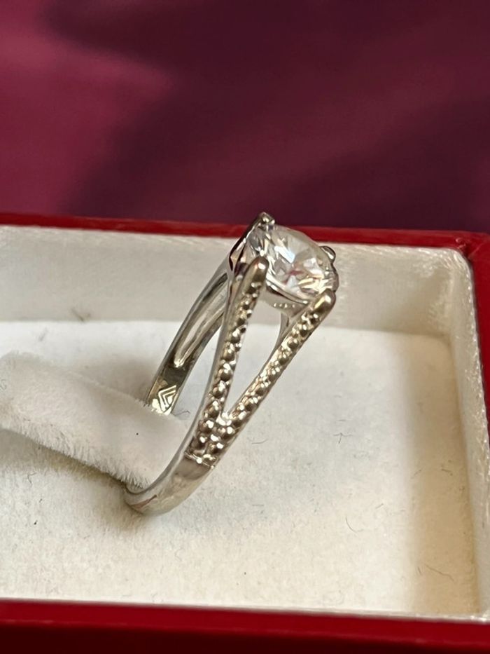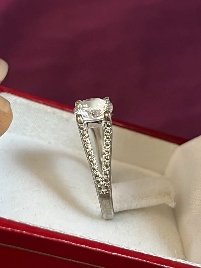 Jolie bague en métal argenté avec pierre blanche T. 52 femme TBE - photo numéro 10