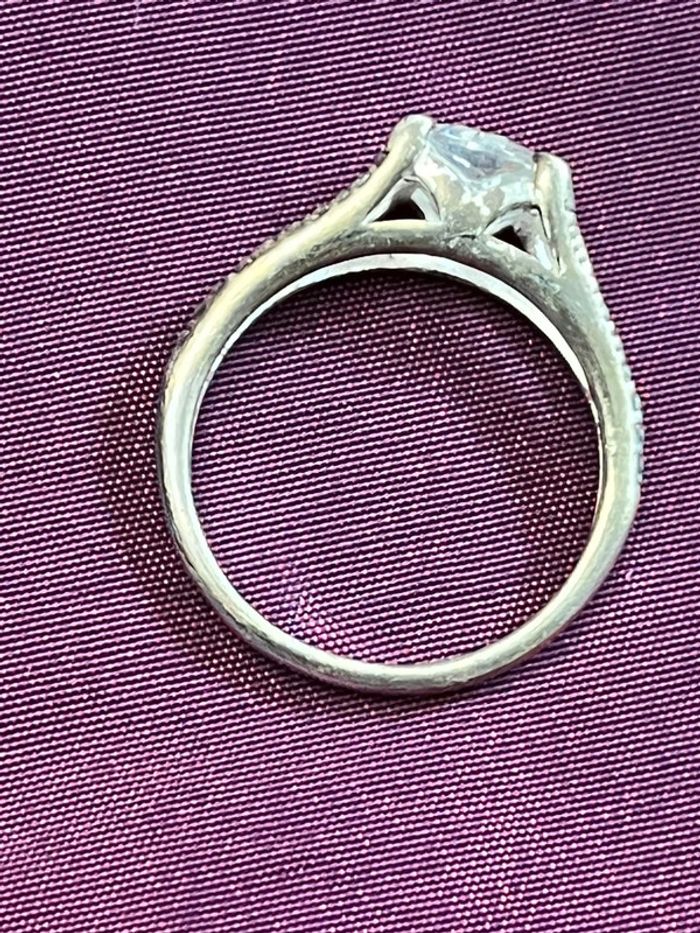 Jolie bague en métal argenté avec pierre blanche T. 52 femme TBE - photo numéro 8