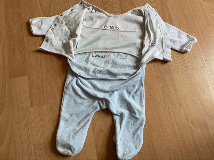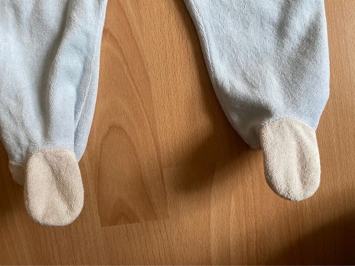 Beau pyjama/grenouillère en velours bleu et blanc T. 9 mois/71 cm garçon TBE - photo numéro 7