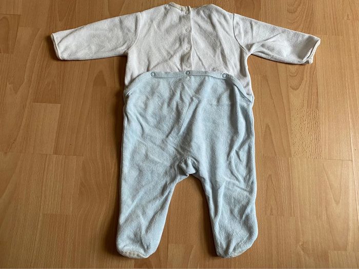 Beau pyjama/grenouillère en velours bleu et blanc T. 9 mois/71 cm garçon TBE - photo numéro 4