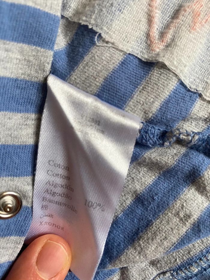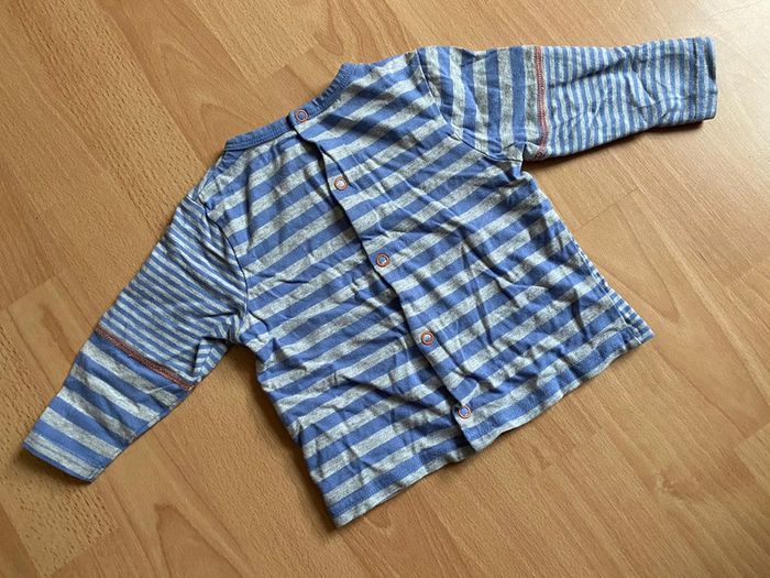 Beau T-shirt gris et bleu à rayures et à manches longues de marque ORCHESTRA pour bébé garçon T. 9 mois/71 cm, en coton, en très bon état. Encolure ronde, fermeture par boutons pression dans le dos. #merine103 #merine103vetementbebe #merine103vetementgarcon #merine103vetementgarcon9mois #orchestra
