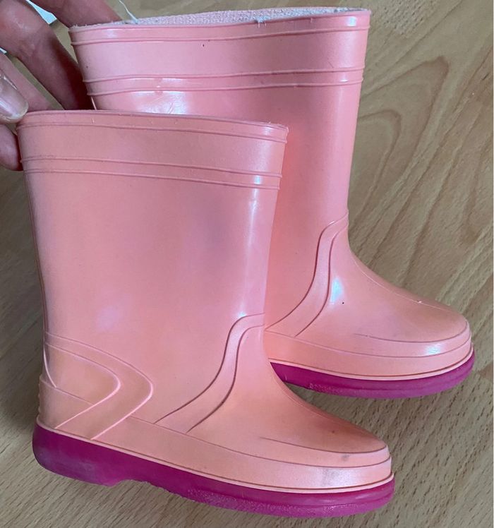 Jolie paire de bottes de pluie en caoutchouc rose pour fille pointure 24, en bon état. #merine103 #merine103chaussuresbebe #merine103chaussuresfille #merine103chaussuresfille24