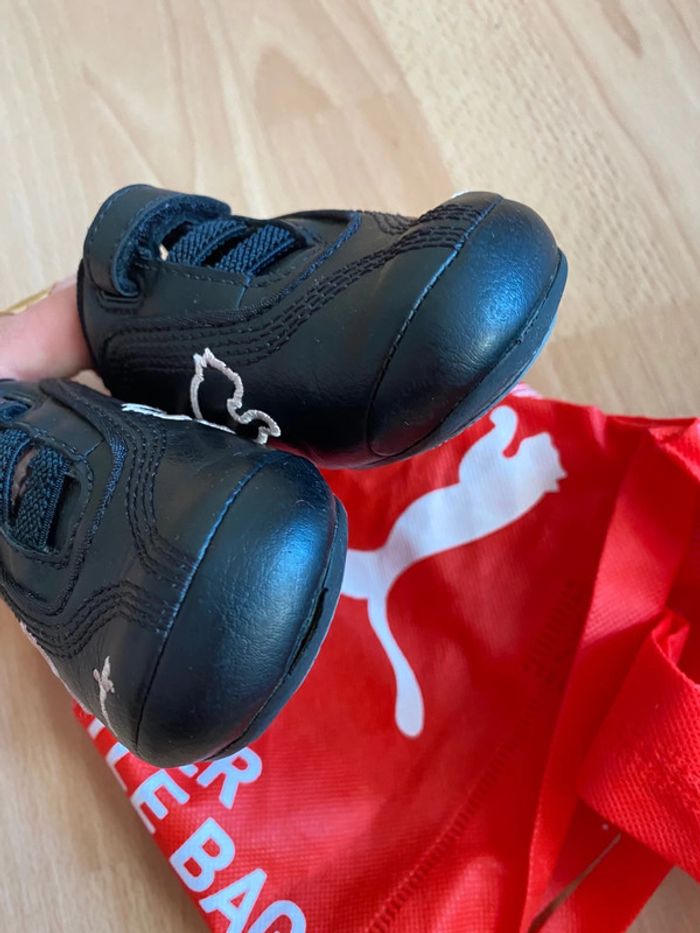 Belle paire de baskets PUMA noir et rose pailleté pour fille pointure 22, en très bon état. Lacets élastiqués et fermeture par scratch. Vendues dans leur sac d’origine.