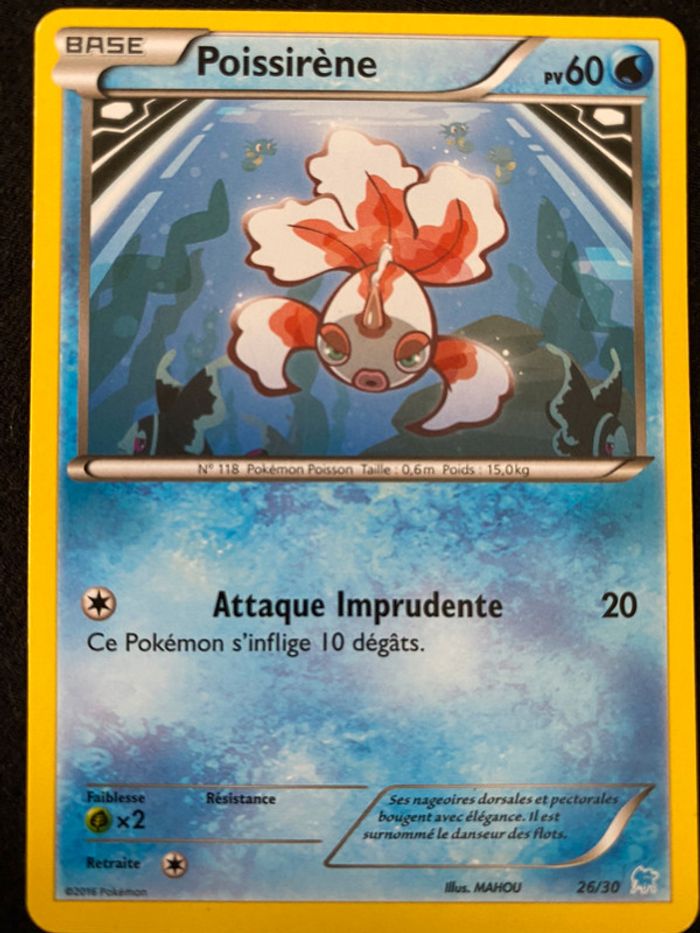 Carte POKÉMON POISSIRÈNE 60PV 26/30, XY Kit du Dresseur Pikachu&Suicune, version française, en excellent état comme neuve. #merine103 #merine103pokemon
