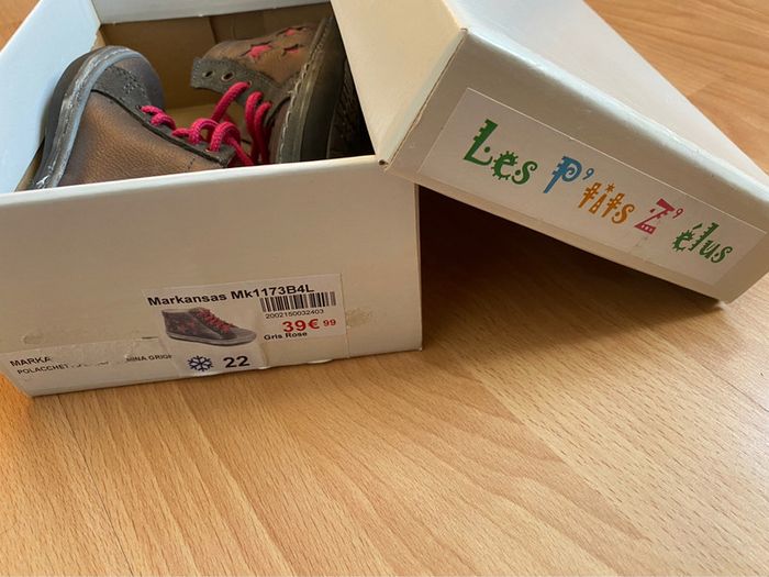 Jolie paire de chaussures/bottines en cuir T. 22 fille neuve avec boîte - photo numéro 1