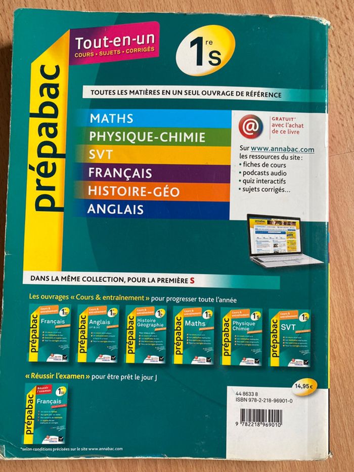 Manuel ou livre de révisions pour le bac PREPABAC 1ère S Tout-en-un regroupant maths-physique-chimie-svt-français-histoire-géographie-anglais, en bon état, il a servi mais peut encore aider. #merine103 #merine103livre