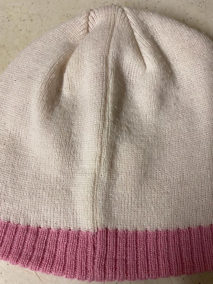 Joli bonnet blanc cassé et rose HELLO KITTY pour fille T. 52 (3 ans), bien chaud en acrylique, en très bon état. #merine103 #merine103vetementenfant #merine103vetementfille #hellokitty