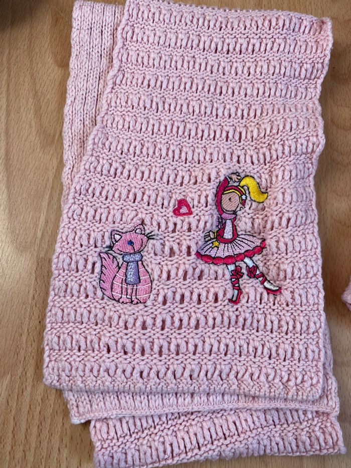 Bel ensemble bonnet et écharpe assortie rose à mailles ajourées, pour fille T. 4 ans, en très bon état. #merine103 #merine103vetementenfant #merine103vetementfille