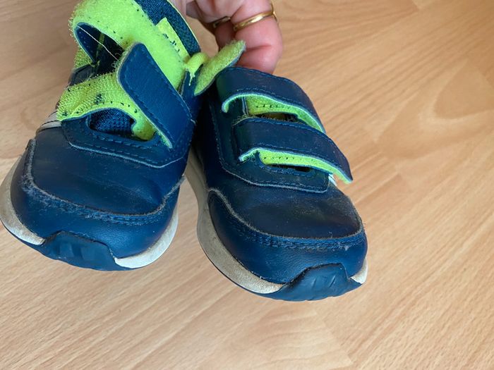 Jolie paire de baskets Adidas bleue et vert fluo T. 22 - photo numéro 5