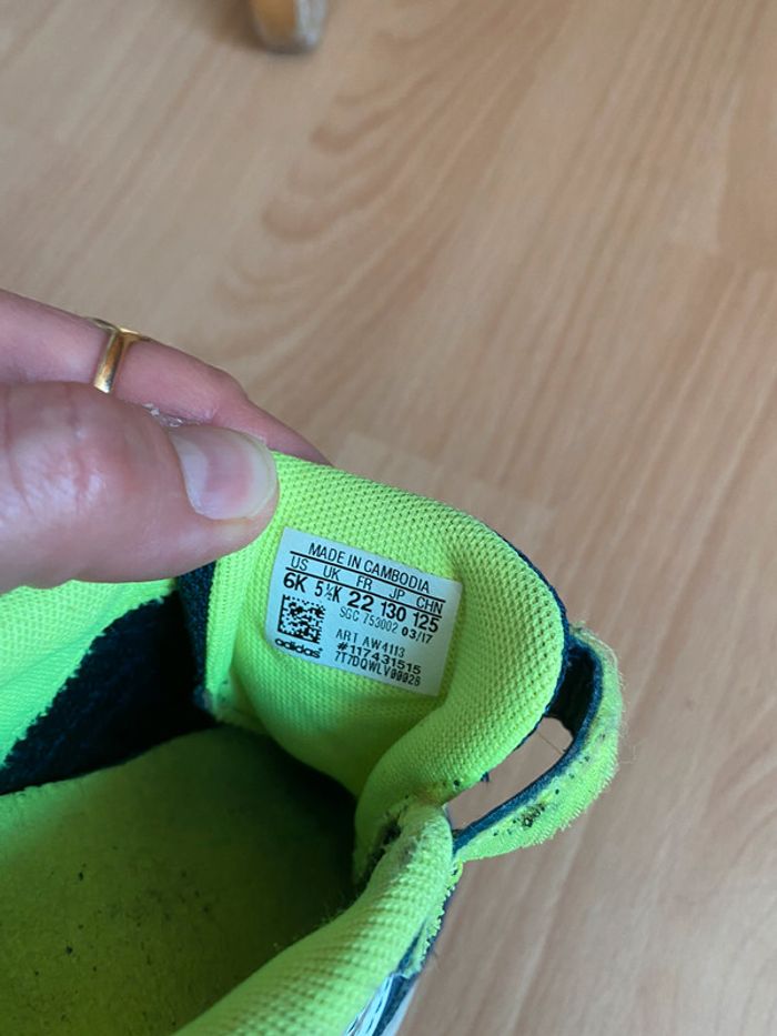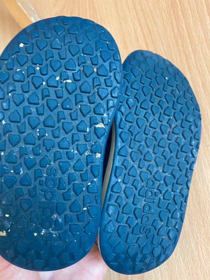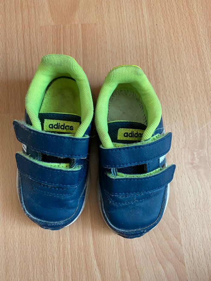 Jolie paire de baskets ADIDAS bleue et vert fluo, pointure 22, en très bon état, il manque juste une semelle à l’intérieur de l’une des chaussures. Antidérapantes, fermeture par scratch. #merine103 #merine103chaussuresbebe #adidas