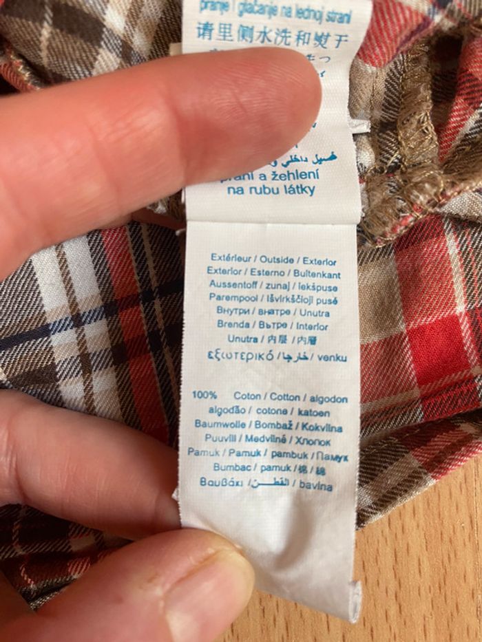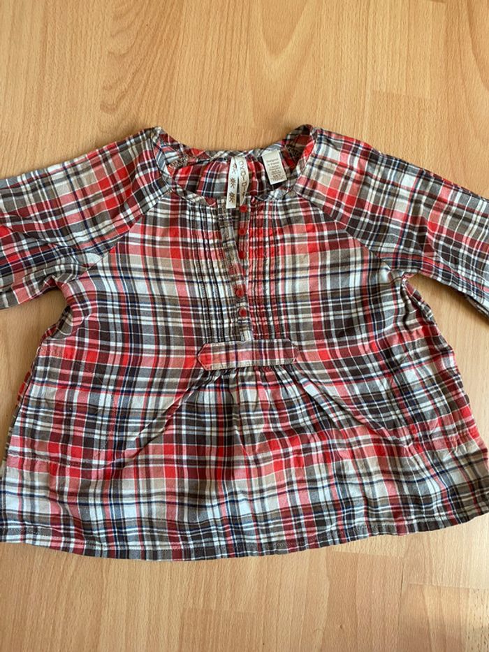 Joli T-shirt ou tunique à carreaux oranges, blancs et marrons, à manches longues, de marque OKAÏDI, pour fille T. 4 ans/102 cm, en coton, en très bon état. Encolure ronde, fermeture par boutons devant, finitions avec des plus « couture ». #merine103 #merine103vetementenfant #merine103vetementfille #okaidi