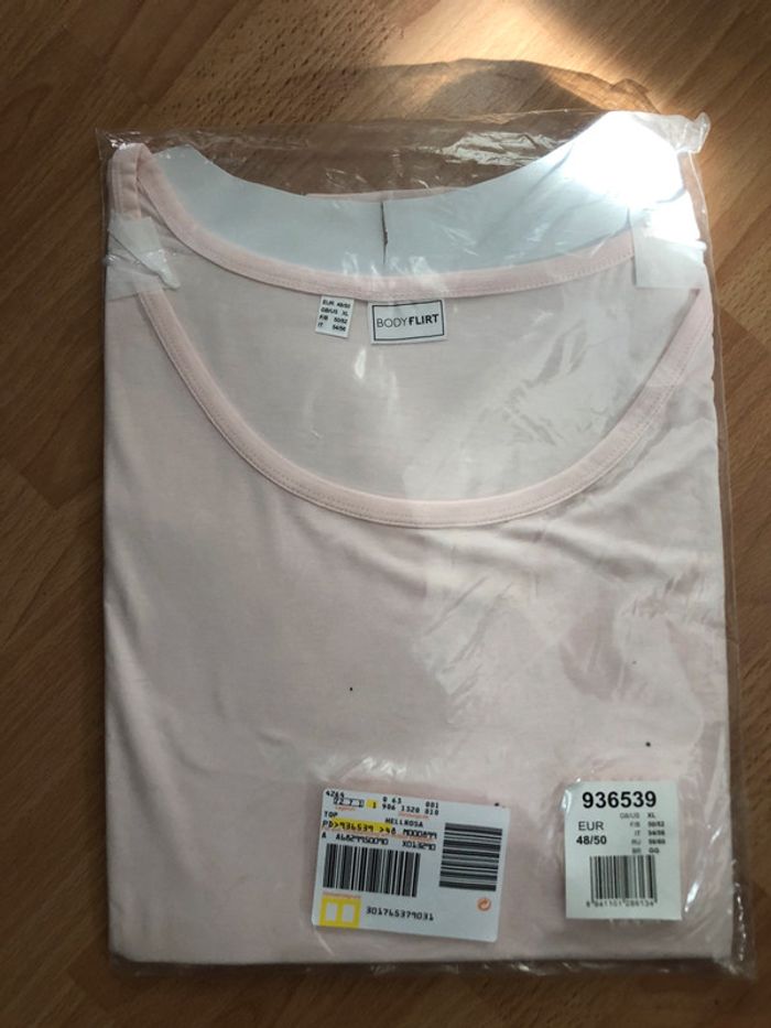 Joli T-shirt à manches courtes rose clair pour femme T. 50/52, en viscose et elasthanne, neuf dans son emballage d’origine. Attention: pour la taille, il faut se référer à la ligne « F » pour la taille française et non « EUR ». #merine103 #merine103vetementfemme #merine103vetementfemme50 #merine103vetementfemme52