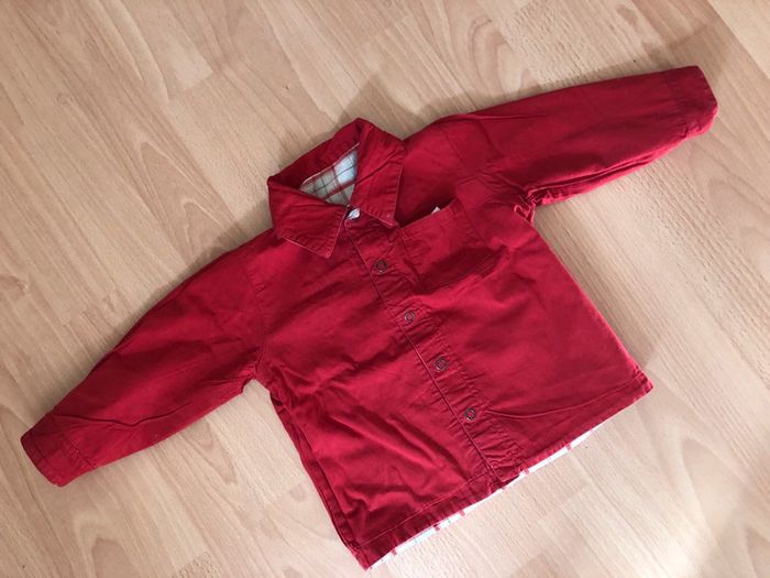 Belle chemise ML rouge et beige à carreaux réversible T. 18 mois/81 cm TBE - photo numéro 1