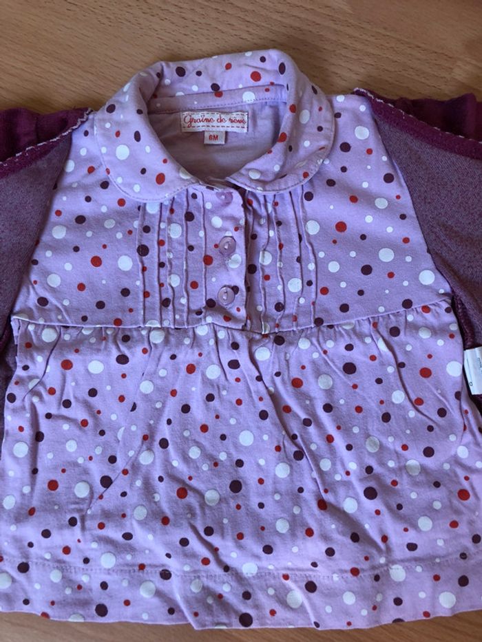 Joli haut ML 2 en 1 rose et prune Grain De Blé T. 6 mois TBE - photo numéro 2