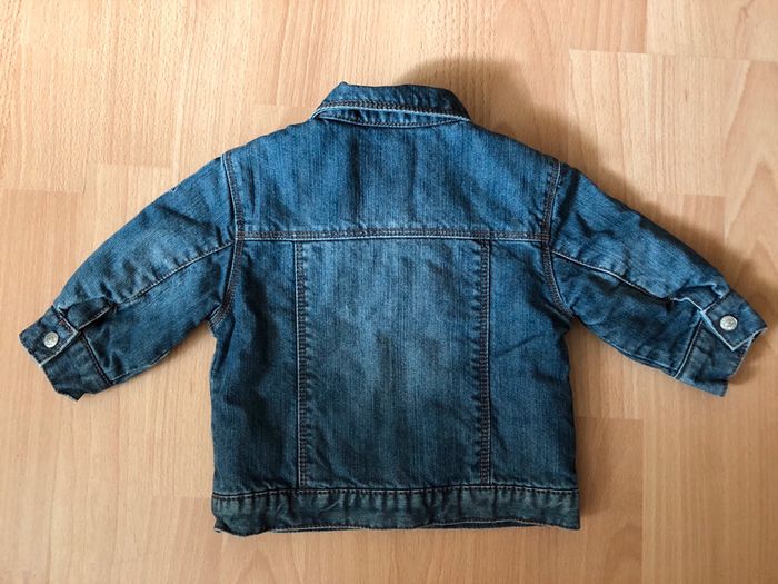 Jolie veste chaude en jean bleu, OBAÏBI, T. 6 mois/67 cm, pour fille ou garçon, en très bon état. Bien chaude avec l’intérieur entièrement doublé et matelassé, 4 poches, bouton pression au poignet, fermeture par boutons pressions.