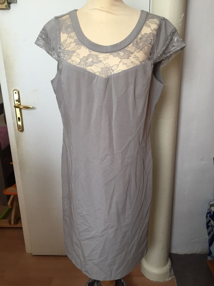 Bel ensemble gris chic T.46 3 Suisses neuf: veste longue + robe - photo numéro 2