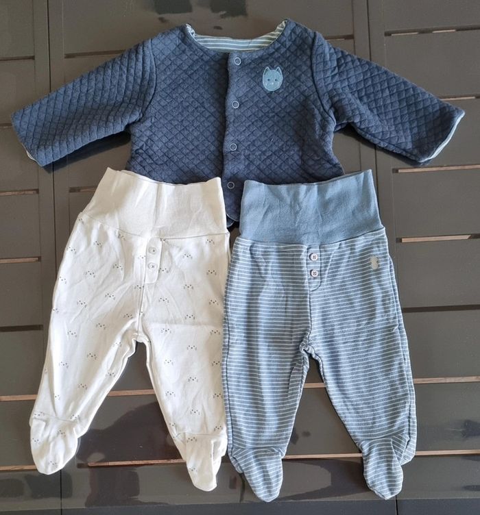 Ensemble 3mois, composé d'un gilet doublé/réversible et de 2 pantalons, neuf, juste lavé