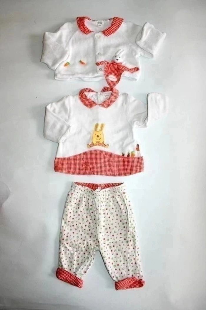 Ensemble 3 pcs Babymini by Catimini composé d'un gilet doublé + un polo en nid d'abeille doublé avec pressions le long du dos + pantalon taille élastique avec bas retroussables, 340g