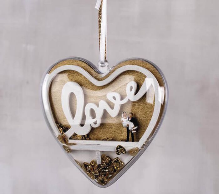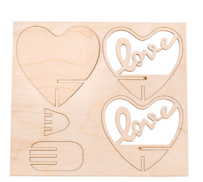 Ce set de 5 pièces en bois "Love" s'insère dans un coeur en plastique transparent de Ø10cm. Libre à vous de monter le set et de le laisser tel quel pour une jolie décoration romantique, ou de le peindre et le décorer selon vos goûts. Les éléments en bois découpés au laser doivent être détachés de la plaque, de préférence au moyen d'un cutter, puis insérés et collés selon les instructions.