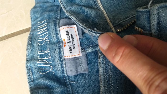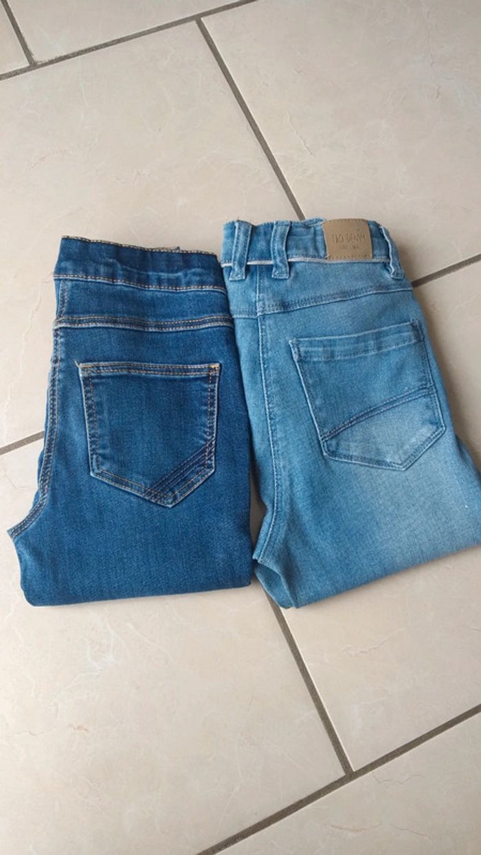 lot 2 jeans tape à l'oeil taille 9 ans le bleu clair a des paillettes et un trou sur le devant voir photo