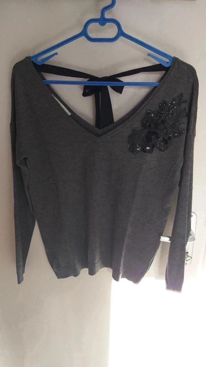pull fin gris promod noeud au dos Taille M mais étiquette coupée bon état