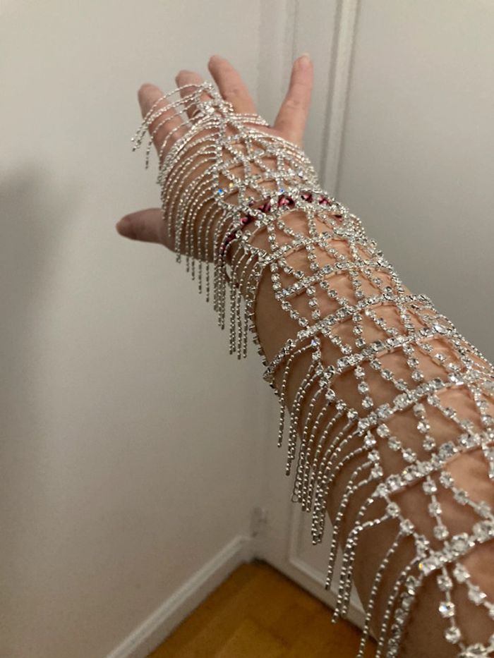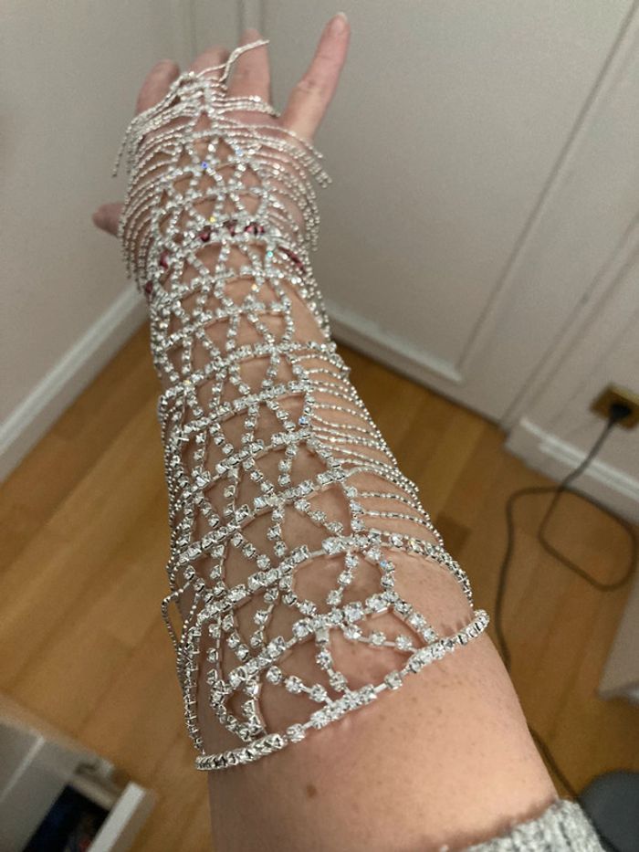 Bijou de bras (pour 1 bras) Strass Mariage ou soirée S’accroche avec une bague intégrée et 2 fermoirs