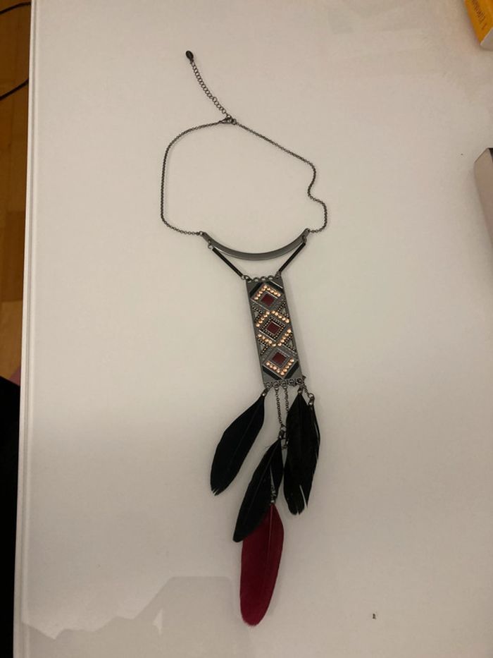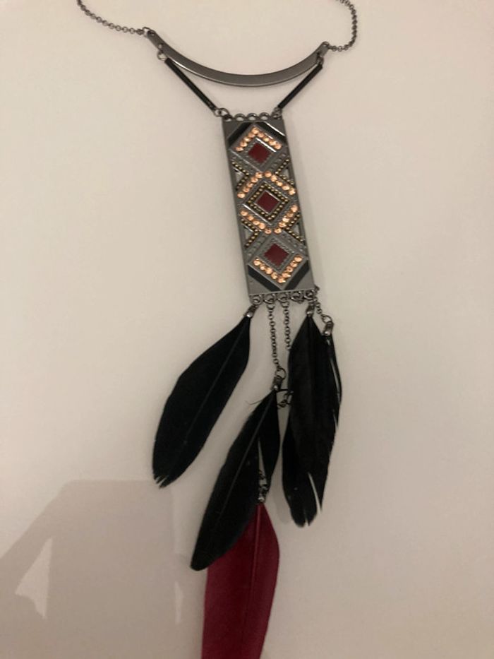 Joli collier avec brillants et plume Jamais porté