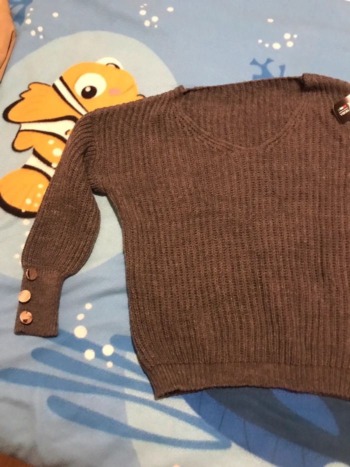 Vends pull neuf gris anthracite neuf et jamais porté avec boutons dorés bas des manches